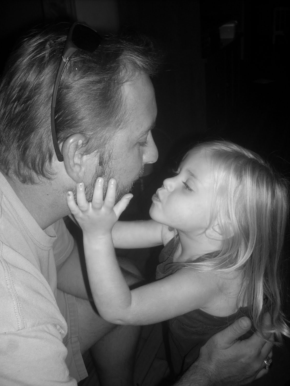 Raegan grabs daddy's cheeks when she kisses him, it is the cutest darn thing. Of course with my point and shoot camera i missed a good picture of her actual kiss...she loooves her daddy! i'm pretty sure she has a pretty special place in his heart as well!